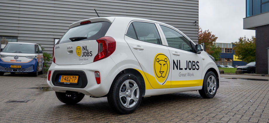 Zo’n 10 jaar geleden mochten wij voor het eerst de signing voor NL Jobs verzorgen. Voor ons is het daarom extra speciaal dat we ook deze nieuwe huisstijl mochten implementeren. We hebben onder andere de nieuwe reclame gerealiseerd op de voertuigen. Omdat de nieuwe huisstijl feestelijk werd geïntroduceerd op een vastgesteld tijdstip, hebben wij dit alles in het diepste geheim voorbereid in onze afgeschermde productiehal.
