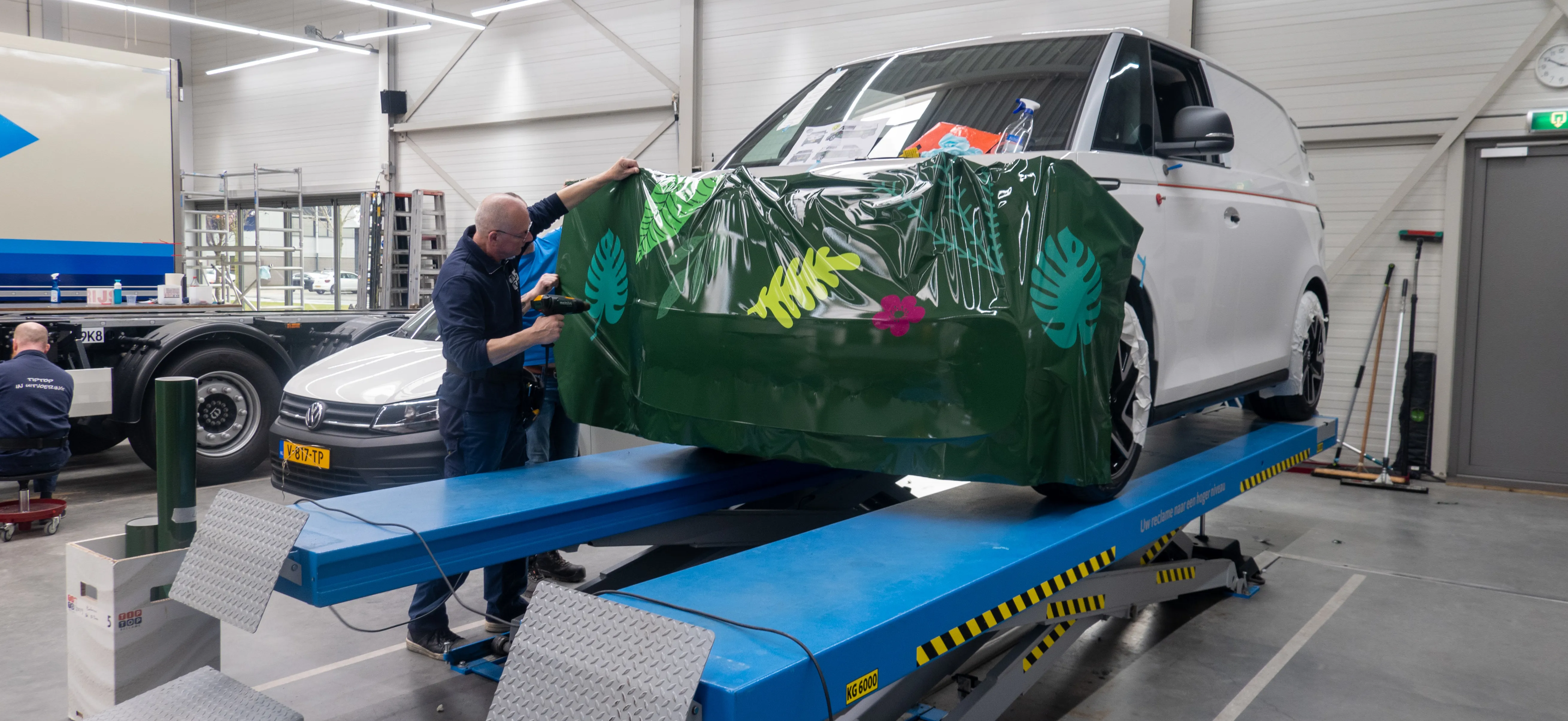 De huisstijl van Plantanious is binnen één seconde te herkennen. Daardoor valt de full colour halfwrap op tussen de andere auto’s op de weg! Omdat wij het beste resultaat willen leveren hebben we gebruik gemaakt van de meest hoogwaardige materialen. Op vakkundige wijze hebben onze monteurs delen van de carrosserie gedemonteerd, zodat onze carwrappers de randen van de folie buiten het zicht konden verwerken. Het was een flinke klus, maar het eindresultaat is prachtig! Bedankt voor het vertrouwen en deze uitdagende opdracht Plantanious!